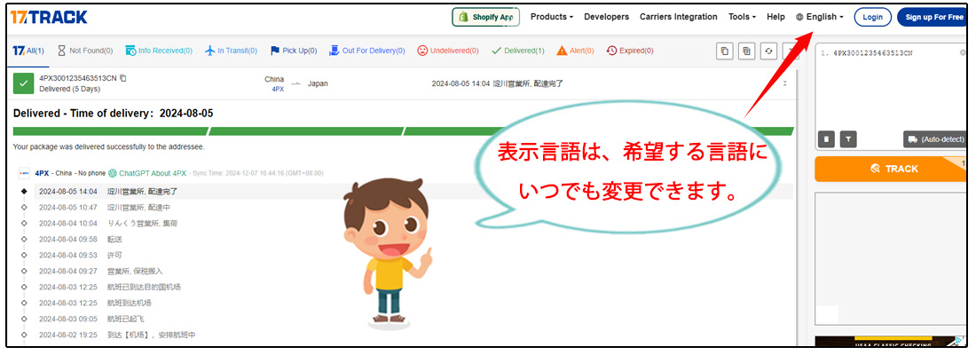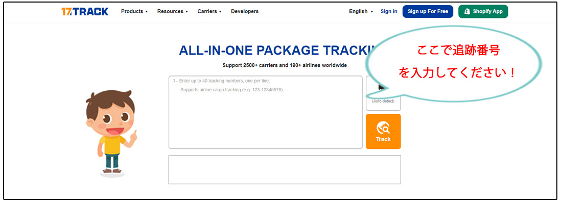 お客様が配送状況を随時確認できるよう、下記に、追跡番号を入力することでご確認いただけます。