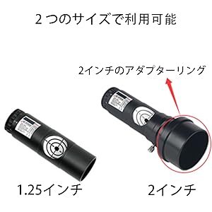 取り外し可能な 2 インチ アダプターこれは1.25 インチ コリメーターで、取り外し可能な 2 インチ アダプターが含まれています。ドットの安定性を向上させるトリプル接合レンズです。すべてのニュートンおよび SCT 反射望遠鏡の正確なコリメーション用に設計されています。 |