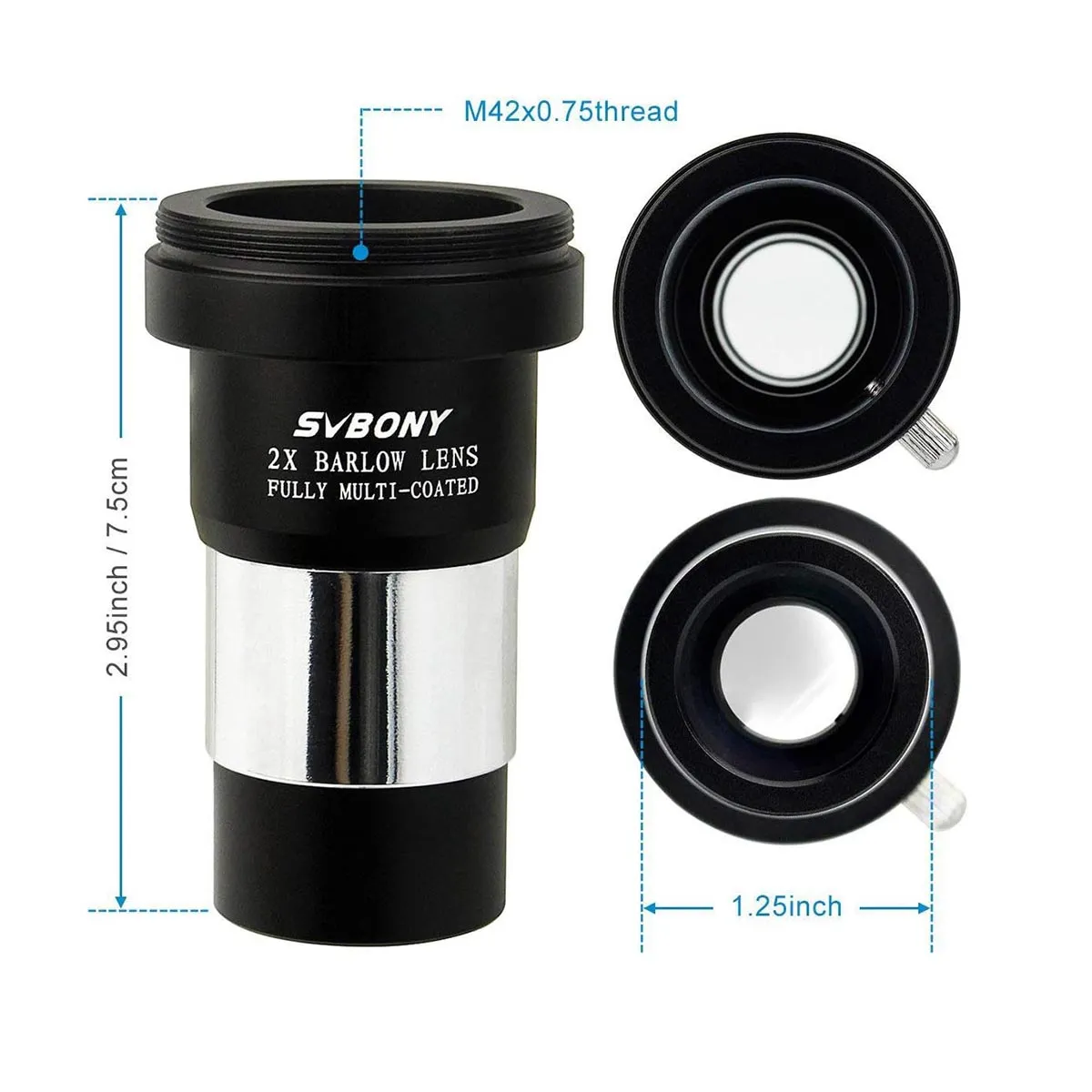 2Xバローレンズ 1.25インチ 天体望遠鏡アクセサリー 望遠鏡接眼レンズ用