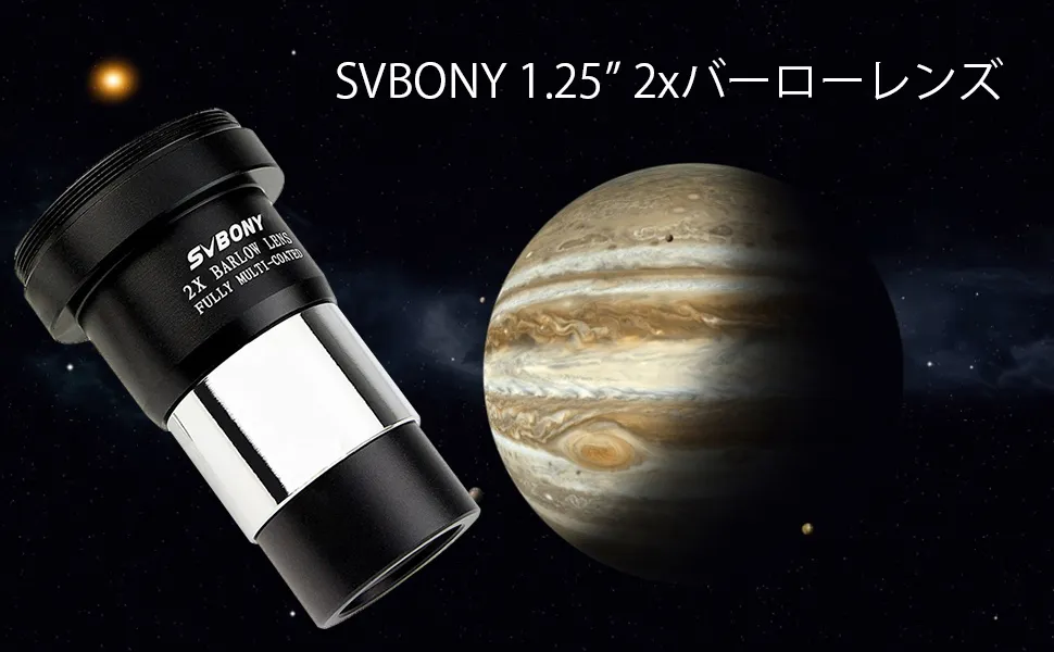 SVBONYバーローレンズは高倍率であるため、月面や他の惑星をより詳細に見ることができます。月の詳細、木星のバンドを高倍率で見たいなら、SVBONY 1.25 "2x バーローレンズの方が良い選択。