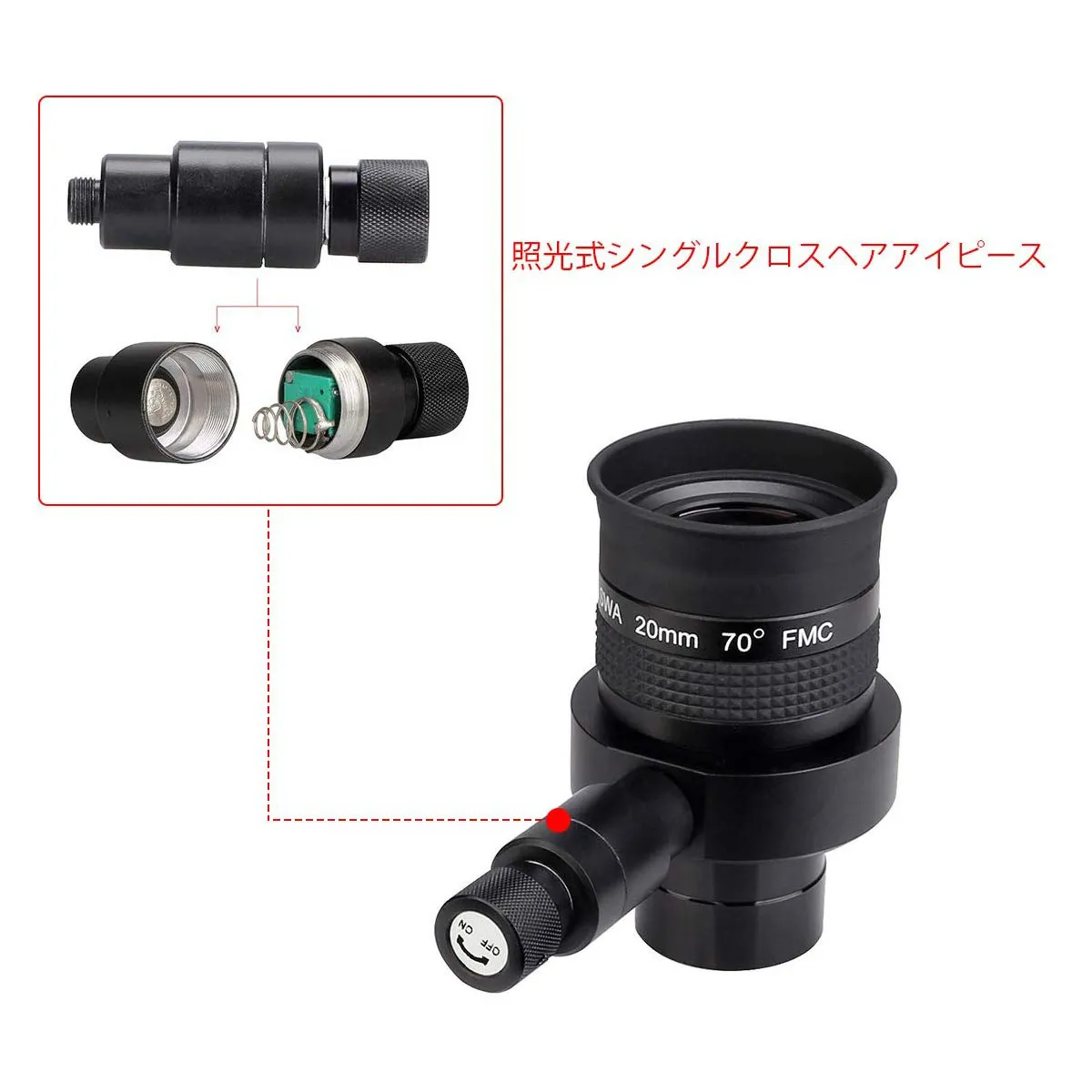 SVBONY SV152 1.25インチ接眼レンズ クロスヘアアイピース 暗視野照明付き十字線入り 焦点距離20mm SWA 見かけ視野70° 天体写真用