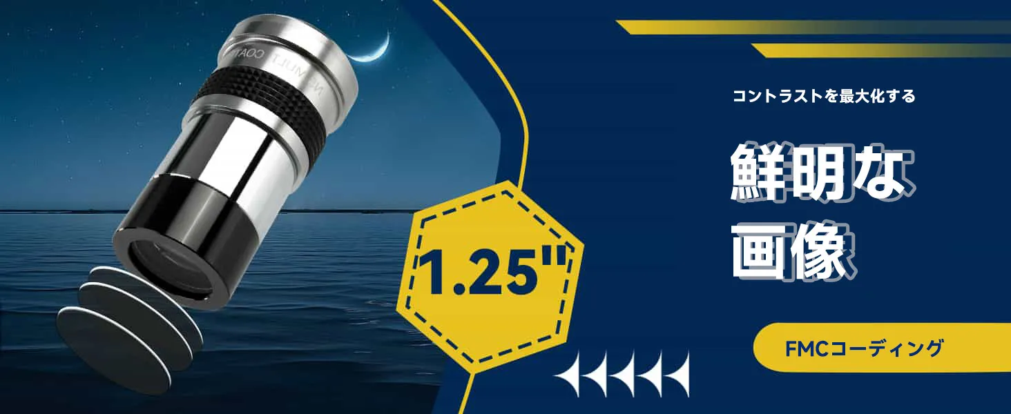 二重接着レンズセット:FMCコーティングプロセスにより、露出した各レンズ表面が完全に広帯域コーティングされ、適切な透過率と画質が確保されます