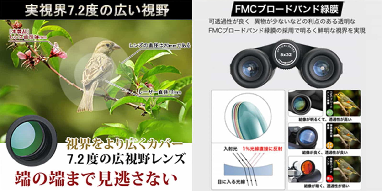 対象物を捉えやすく、バードウォッチングや自然観察、コンサートなどを楽しむことに適しています。