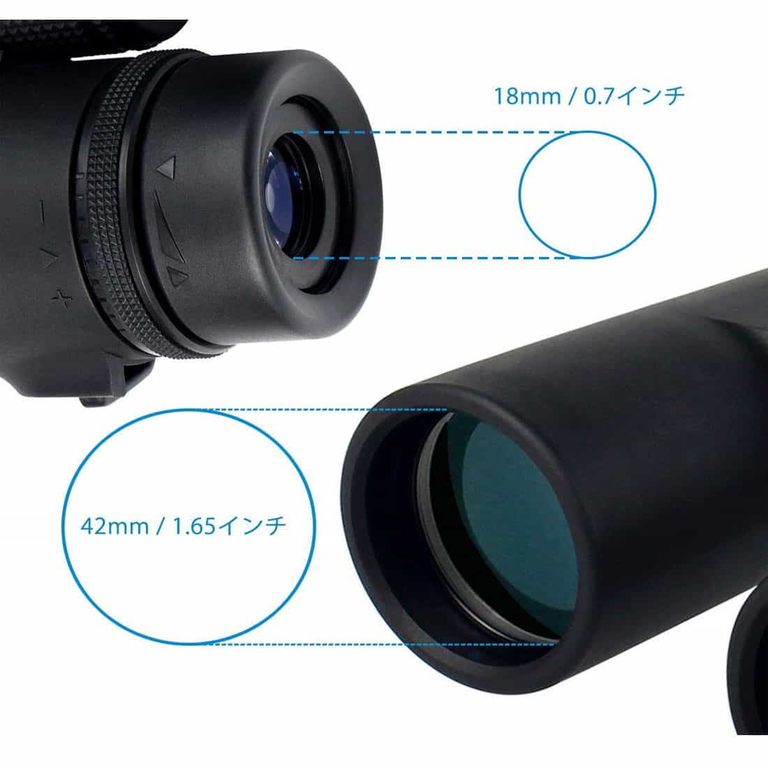 光の透過率を高める多層膜コーディングを施されています、優れた光学性能により鮮明でシャープな像を実現、表面への光反射をしっかり防止できまして、透光率抜群・高解像度の画面が受取られて、長距離でもスポーツ観戦や野鳥観察を楽に楽しみます。