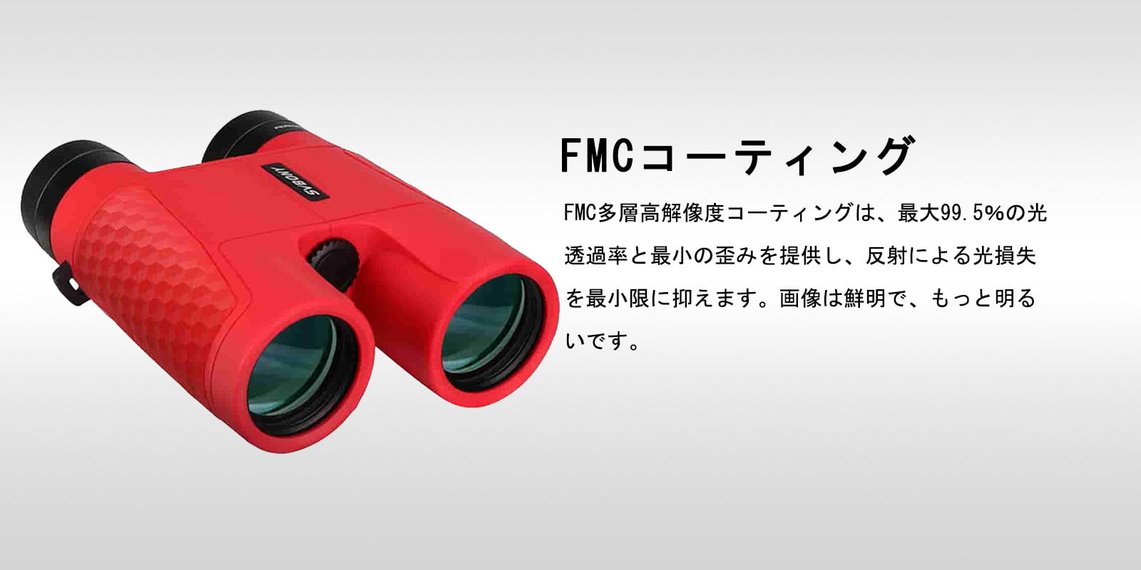 安価な双眼鏡では簡略化されがちな光学系のコーティングですが、この双眼鏡ではレンズ面にFMC多層コーティングを施すことにより、高い透光率と高解像度を実現しました。