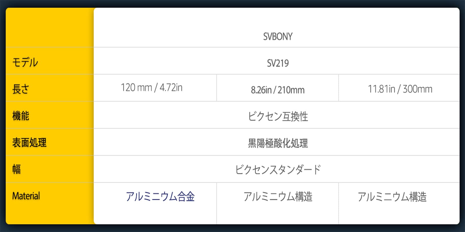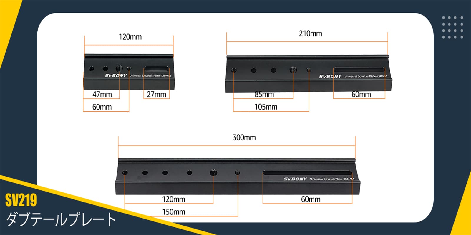 1.SV219アリミゾレールは従来のアリミゾレールを一回り大きくし、3つのサイズ 120MM 210MM 300MMで利用可能です。