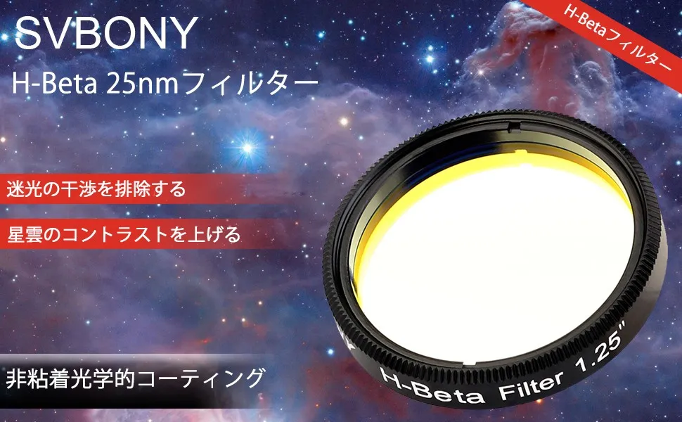 SVBONY 1.25"&2 "H-Beta 25nmフィルター 馬頭星雲/カリフォルニアおよび暗黒の繭星雲用