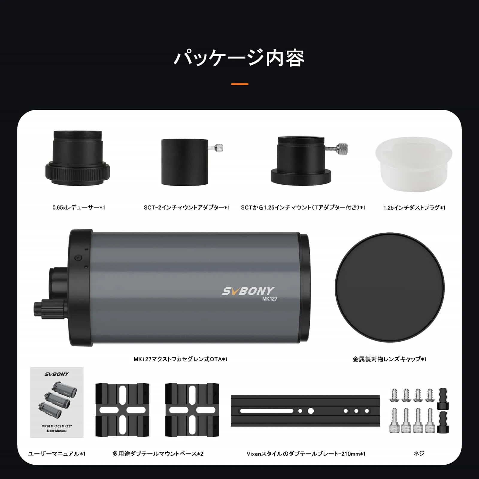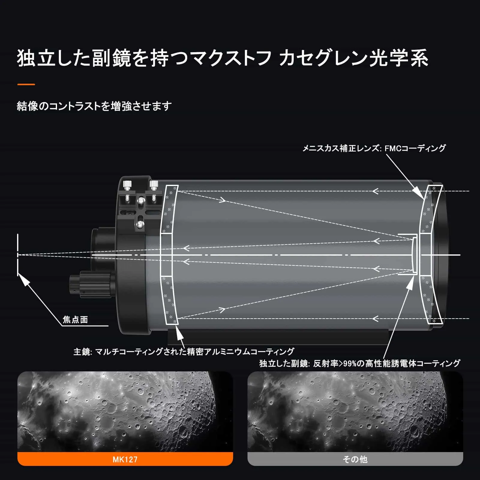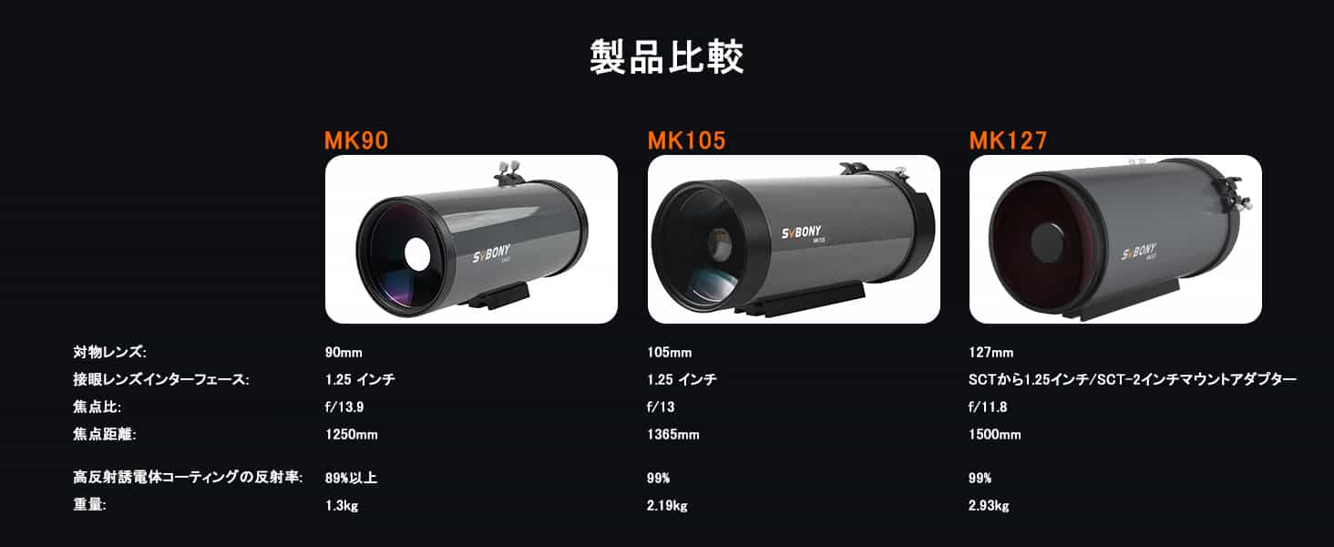 MK127 マクストフカセグレン式望遠鏡 f11.8 焦点距離1500mm 集光力254倍 分解能0.91秒 極限等級13等