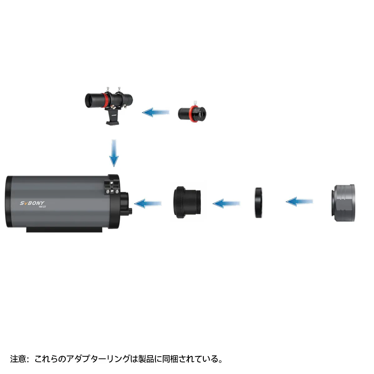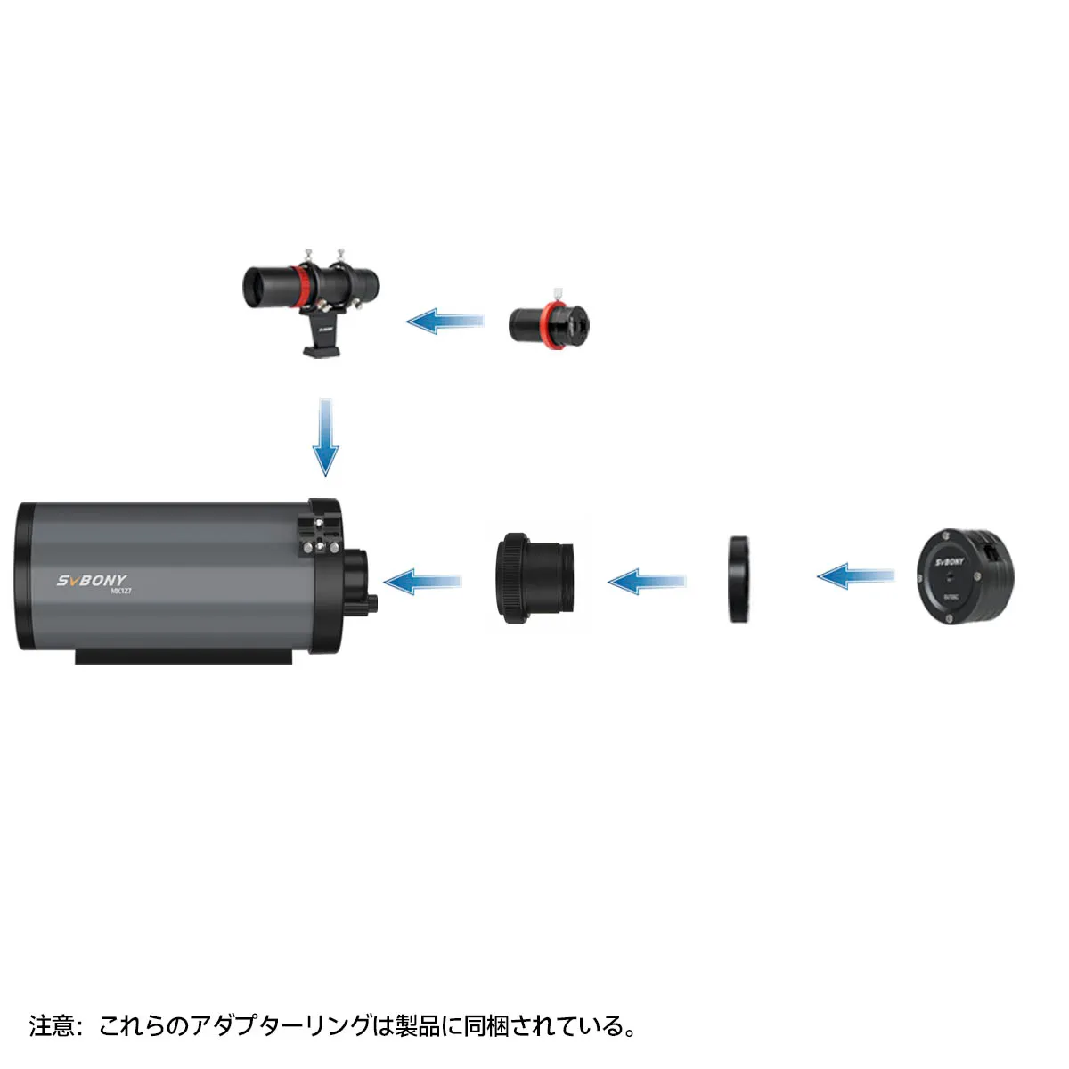 MK127望遠鏡とCMOSカメラの接続方法:https://www.svbony.jp/blog/how-to-connect-the-mk127-telescope-and-cmos-camera