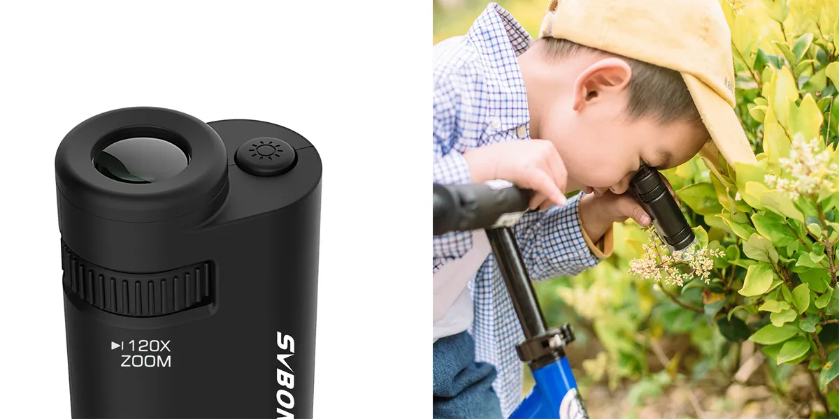 SVBONY SV603 120x携帯式顕微鏡拡大鏡 生物科学観察探査 LED照明