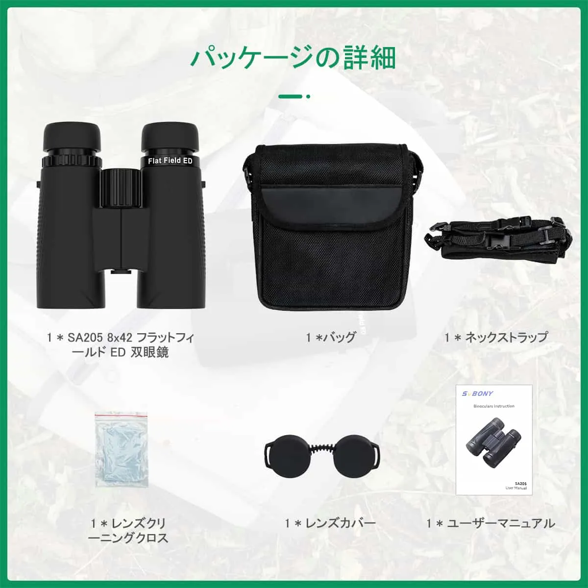SA205 8x42 ED フラットフィールド双眼鏡 IP67 防水および Bak4 プリズム 野鳥観察 自然観察