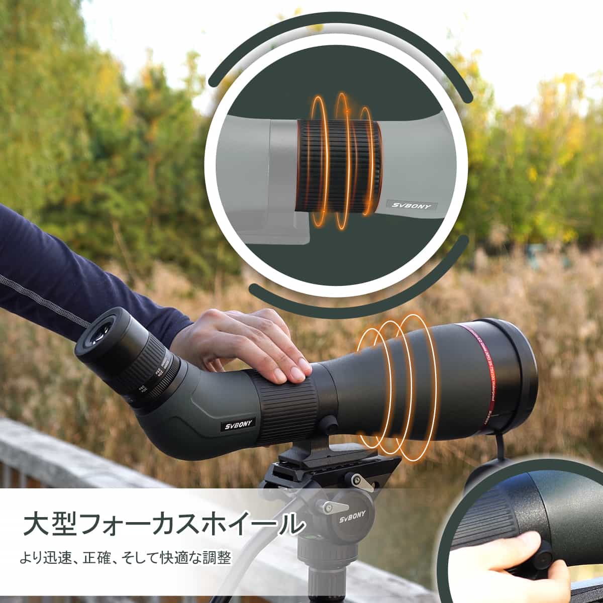 5.スムーズなフォーカスホイール。 動きの速い鳥を正確に捉えることができます。 焦点を簡単に調整します。 高速フォーカシングを実現。 動く鳥を捕まえる