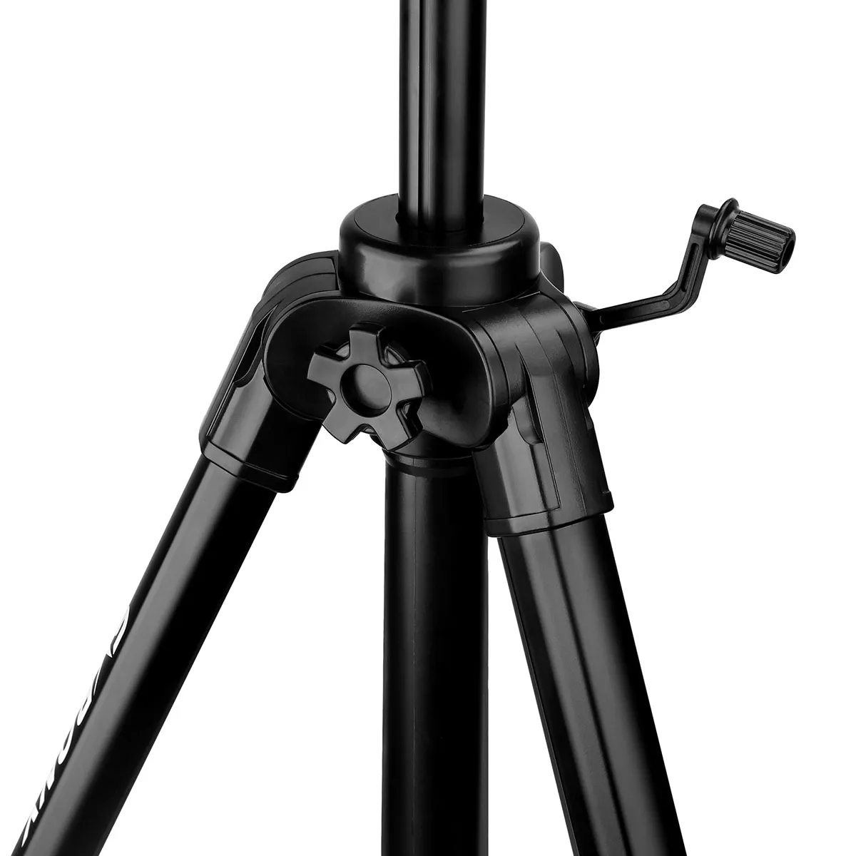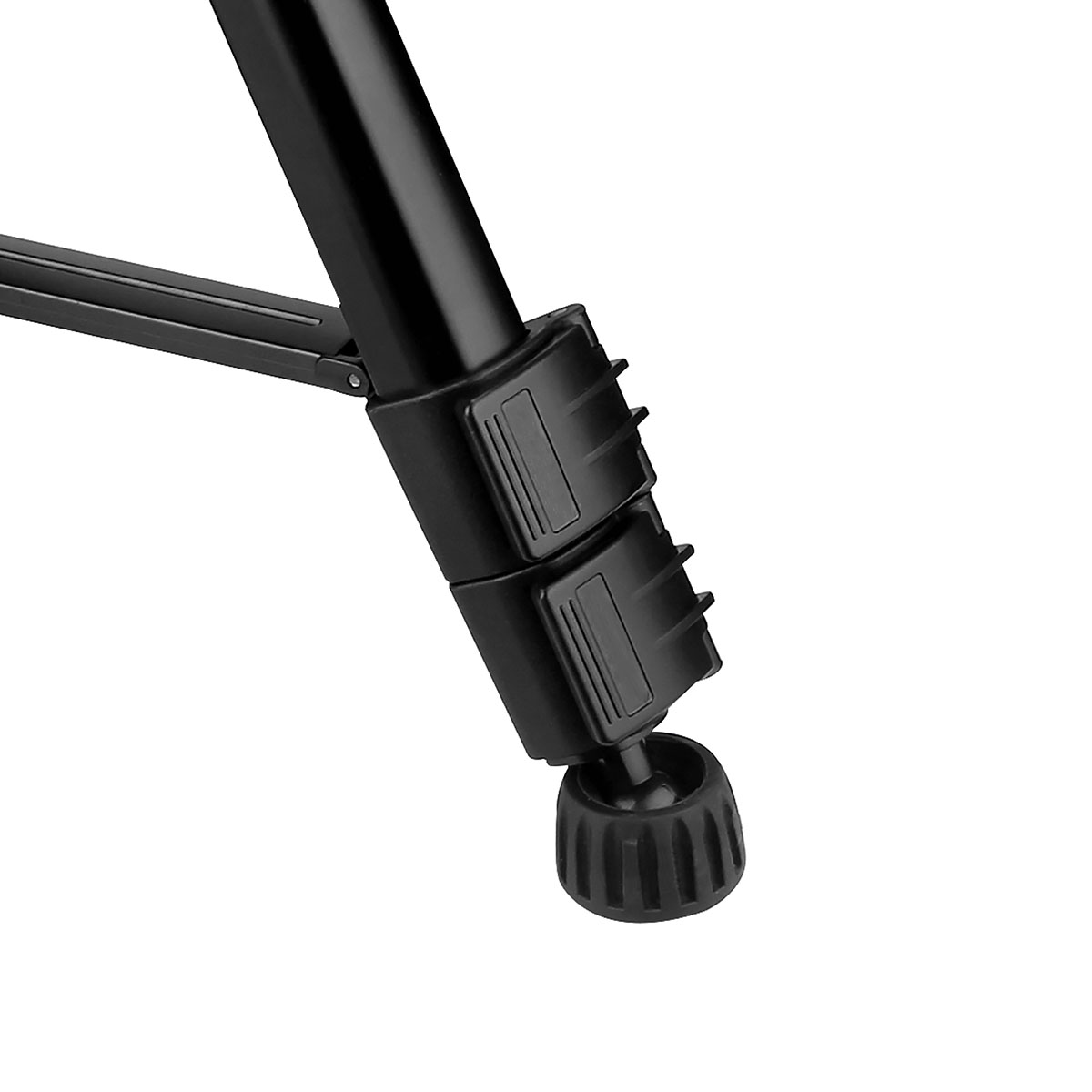 2.3段階の三脚にはレバーロック式ノブが装備されており、高さをすばやく調整してしっかりと固定できます。最短の折りたたんだ状態でのサイズは27.56インチ(70cm)で、最大高さは64.56インチ(164cm)で、さまざまな撮影ニーズに対応できます。