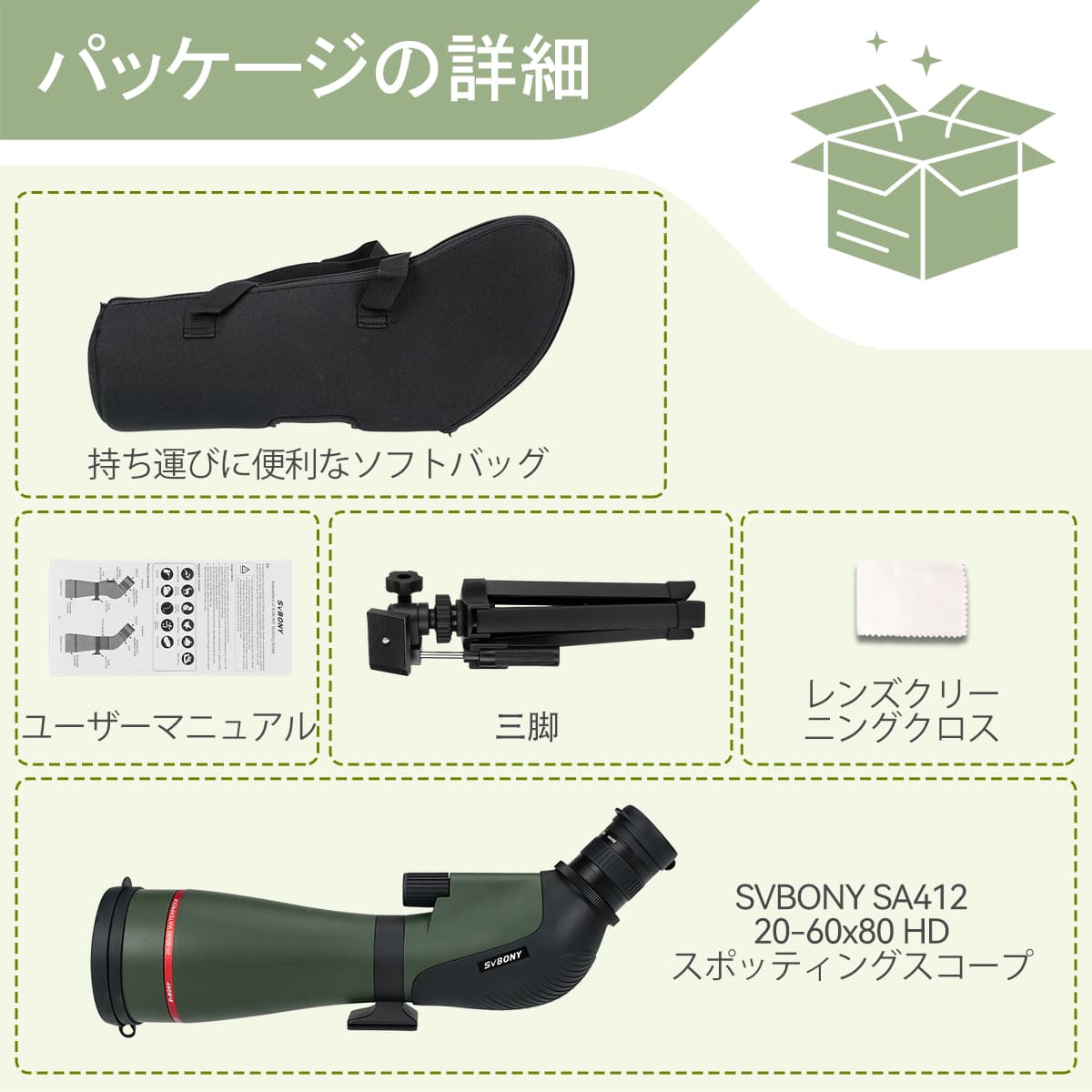 Svbony SA412 スポッティングスコープ 20-60x80mm HD FMC レンジスポッタースコープ