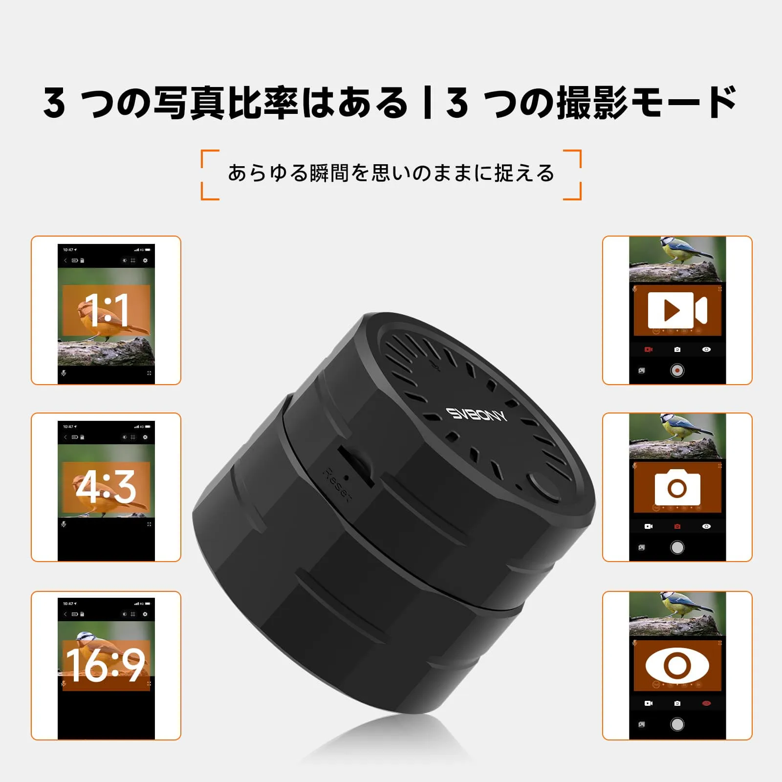 どこでも簡単に接続できる:SC002 Wi-Fi カメラには、高速で安定したデータ転送を実現する Wi-Fi ホットスポットが内蔵されています。遠隔地でも外部ネットワークを必要とせず、バードウォッチングの瞬間を即座に撮影して共有できます。10mのWIFI信号範囲を備え、リラックスしながらバードウォッチングの映像を楽しめます。