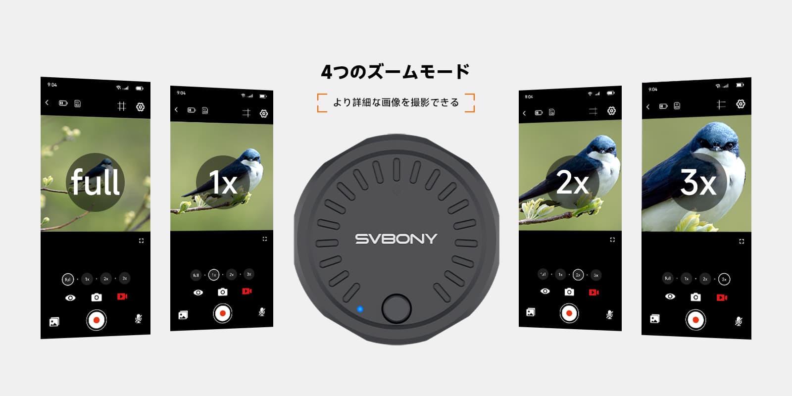 あらゆるショットに対応する多用途モード:SVBONY SC002 Wi-Fi カメラはズーム機能を備え、ビデオ、写真、プレビューの 3 つのモードをサポートしています。鮮明なショットを撮る場合でも、素晴らしいビデオを録画する場合でも、この多用途ツールはバードウォッチングのニーズに対応します。