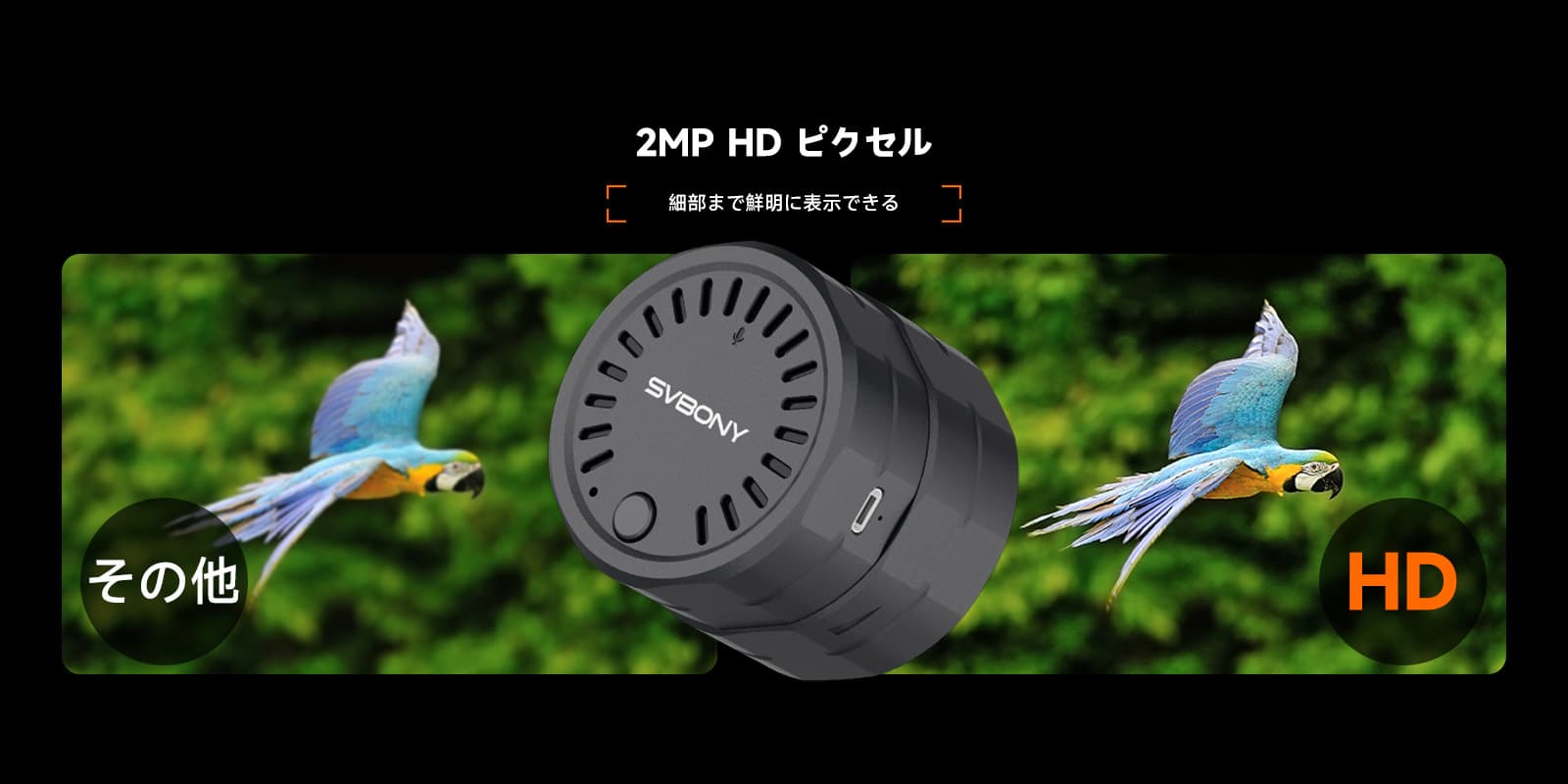 高い解像度で鮮明な画像:200万ピクセルを搭載した SVBONY SC002 Wi-Fi カメラはバランスの取れた解像度を提供し、鮮明でシャープな画像をリアルタイムで提供します。バードウォッチングや自然探検などのアウトドア活動に最適です。