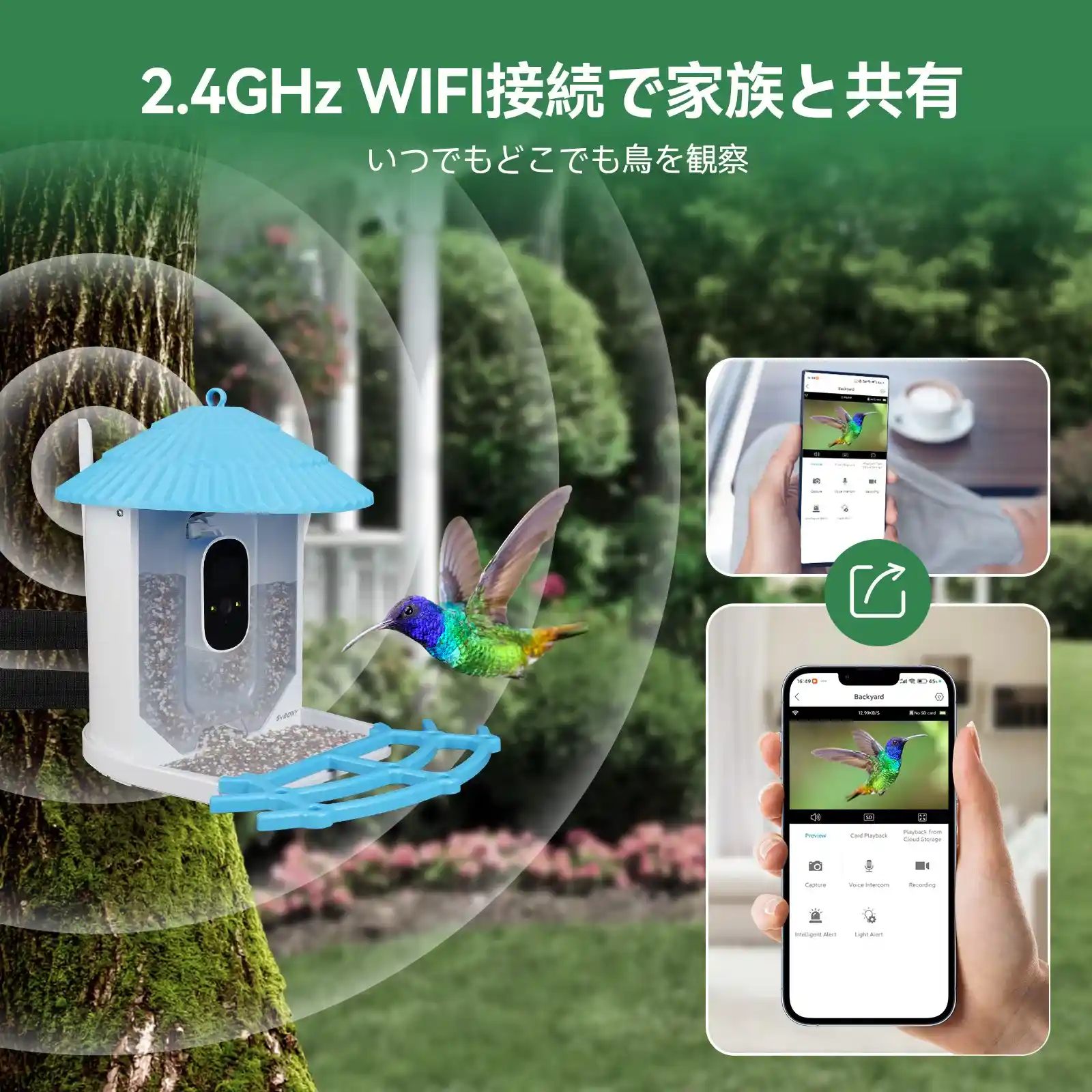 カメラは 2.4GHz WIFI のみをサポートします。5GHz WIFIではありません。信号損失や鳥の訪問の瞬間を逃すことを心配する必要はありません。