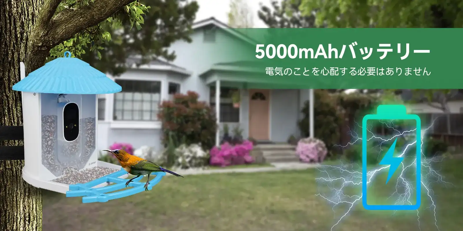 3.スマートバードフィーダーには5000mAhの充電式大型バッテリーが内蔵されており、充電せずに3か月以上の動作をサポートできます。