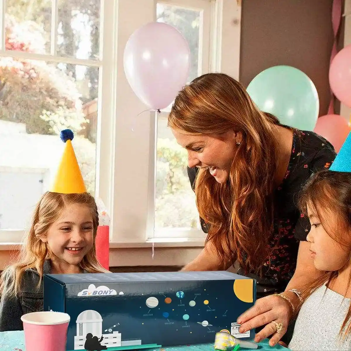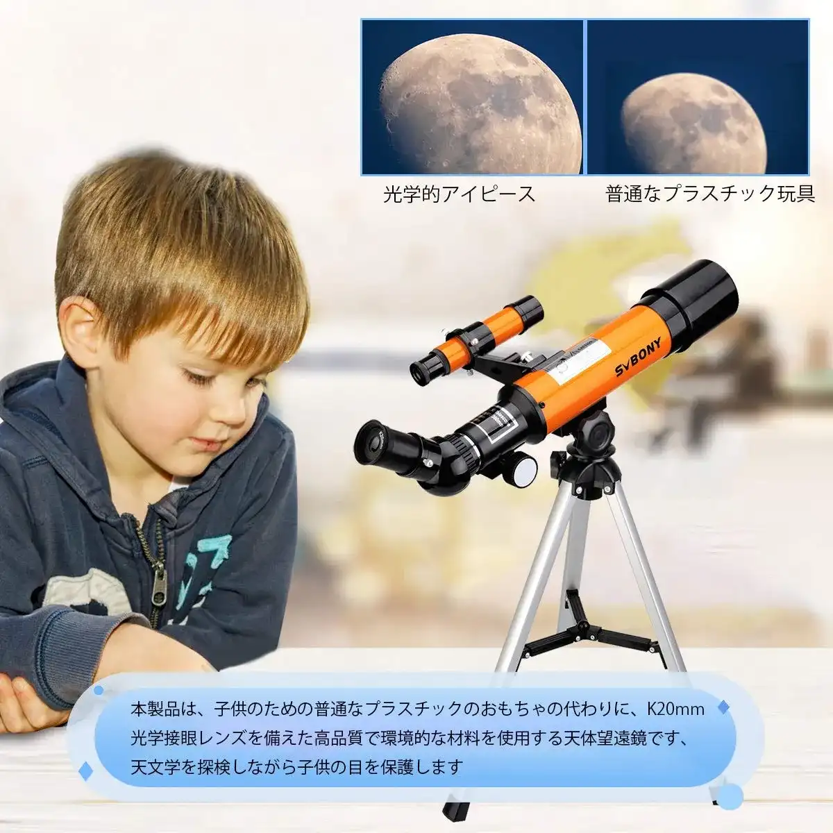 子供は、メーカーが望遠鏡の前に置く月の写真を見る代わりに、SV502望遠鏡を通して本当の月を見ることができます。
