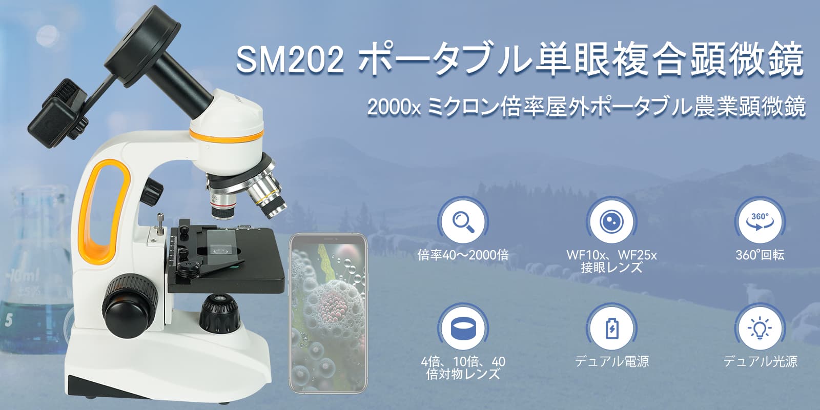 SVBONY SM202 ポータブルモノクラー顕微鏡 80-2000X 農業用