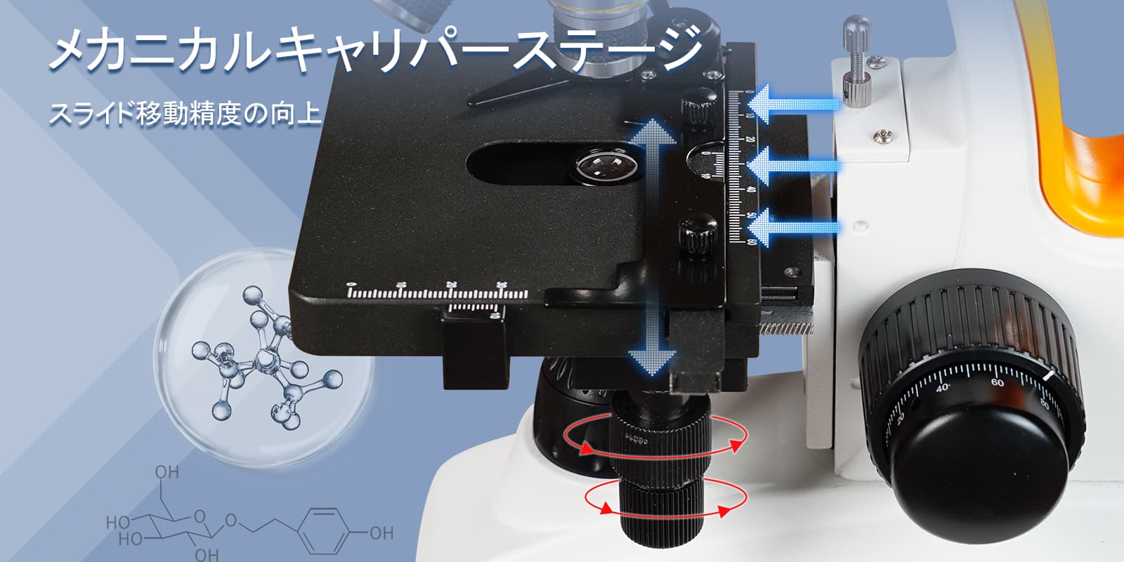 複合単眼顕微鏡はスライドの移動精度が高く、1000x~2000xの高倍率でスライドを観察する際の移動精度を確保します。