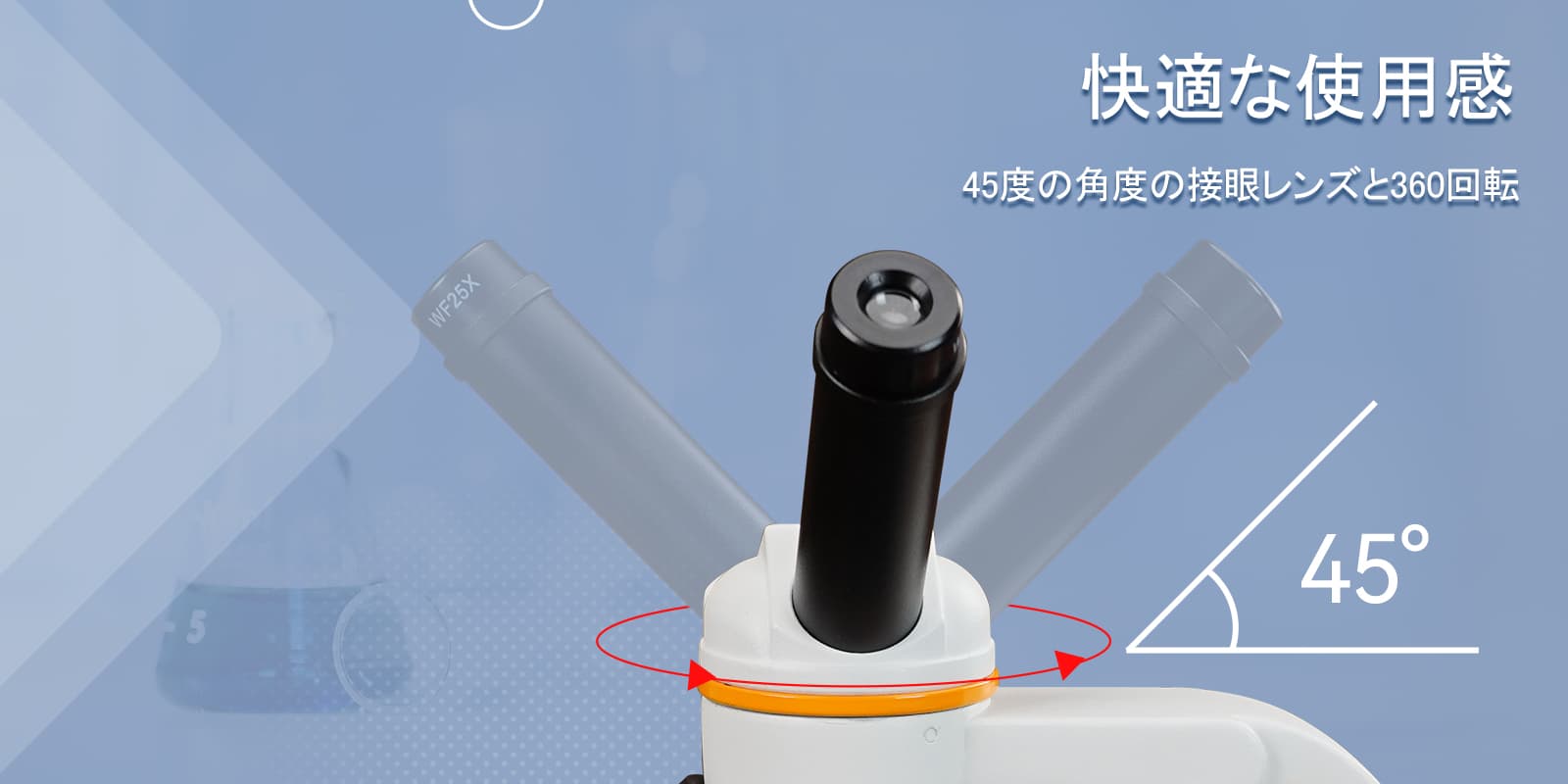 単眼顕微鏡は高品質で使いやすい顕微鏡で、45°の角度で、さまざまなデスクトップや環境に適応し、観察者は快適な観察角度を得ることができます。農業用途(動物の糞便検査、水質検査、 魚の病気の検出)