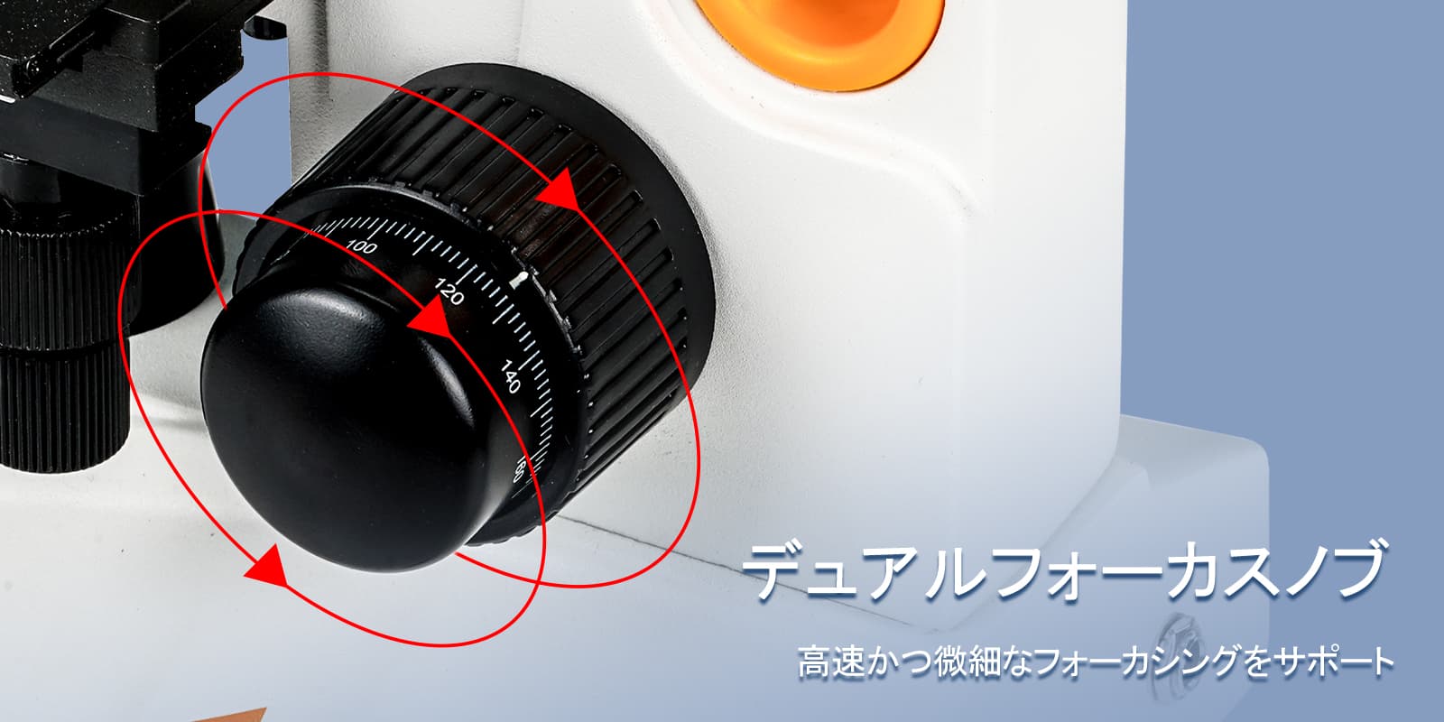 デュアルフォーカスノブにより、素早くまたは細かく焦点を合わせることができ、ニーズに応じてフォーカスノブを選択できます。