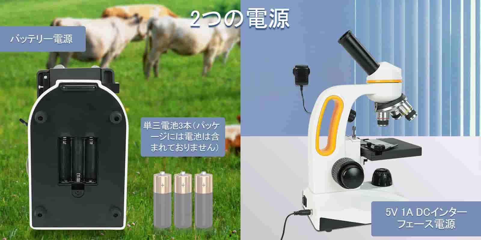 ラボ用複合顕微鏡のバッテリーは、コンパートメントと 5V1A DC インターフェース電源をサポートしています。 屋内および屋外の観察習慣に。 デュアル電源モード設計を追加し、屋外での使用の不安を解決します。