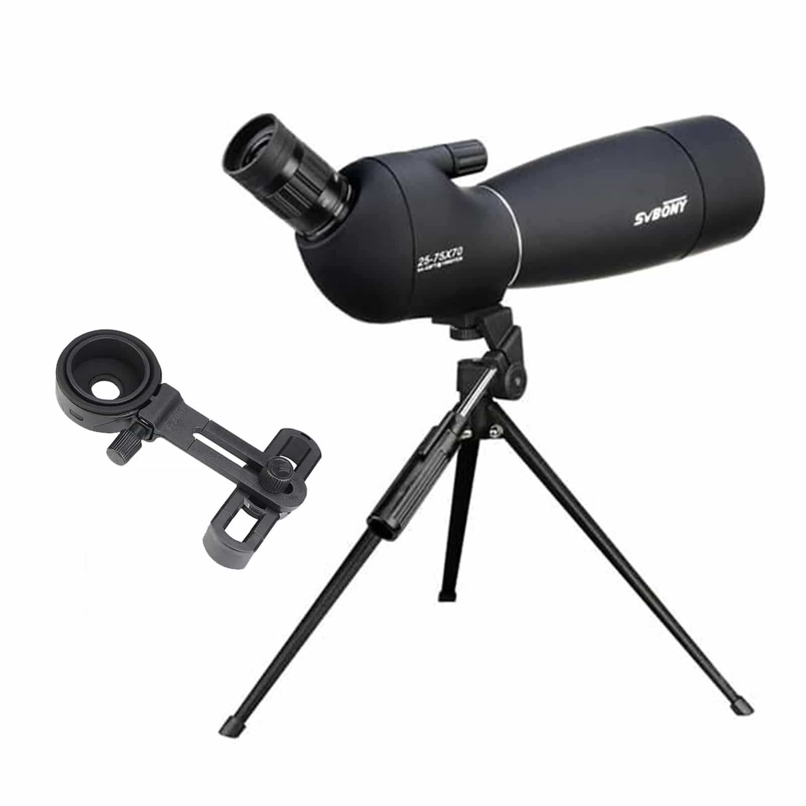 SVBONY SV28 フィールドスコープ 25-75x70 高倍率 スポッティングスコープ 卓上三脚付き 自然観察、射撃、アーチエリーに適用 ブラック