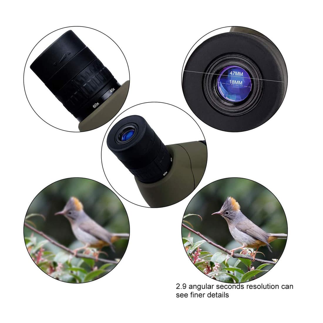 解像力の値が小さいほど望遠鏡の光学性能がアップし 、より鮮明な画像が得られます。普通の望遠鏡の解像力の値は通常に3以上です。2.9角度秒はコストパフォーマンスが優れています。
