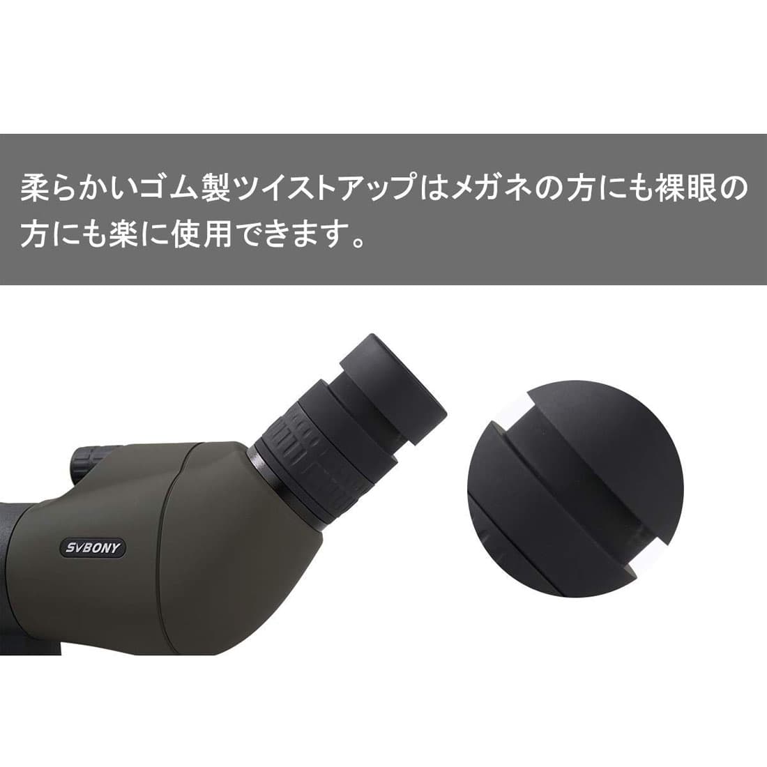 360度調整出来ます。仰ぎ見る/水平角に見る/俯き見る、どんな姿勢でも観察できます。ロックネジ緩めれば、自由に観察角度を調整することできます。 傾斜型フィールドスコープ、軽くて対象物を捕捉しやすい、操作性にも優れ、接眼部が45度、上向きに傾斜したコンパクトなフィールドスコープです。14.5mm〜11.5mmのアイレリーフ