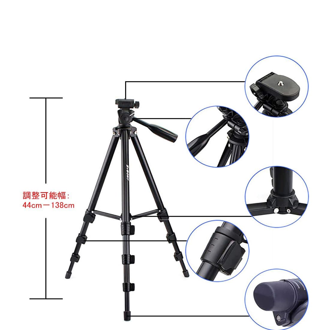 2、カメラ三脚:汎用1/4 "ネジ