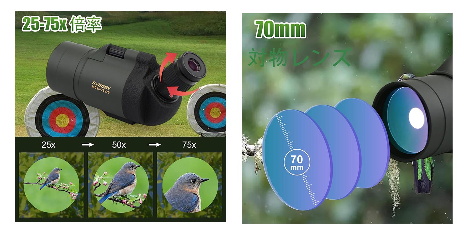 1、SVBONY SV41 25-75x70フィールドスコープ