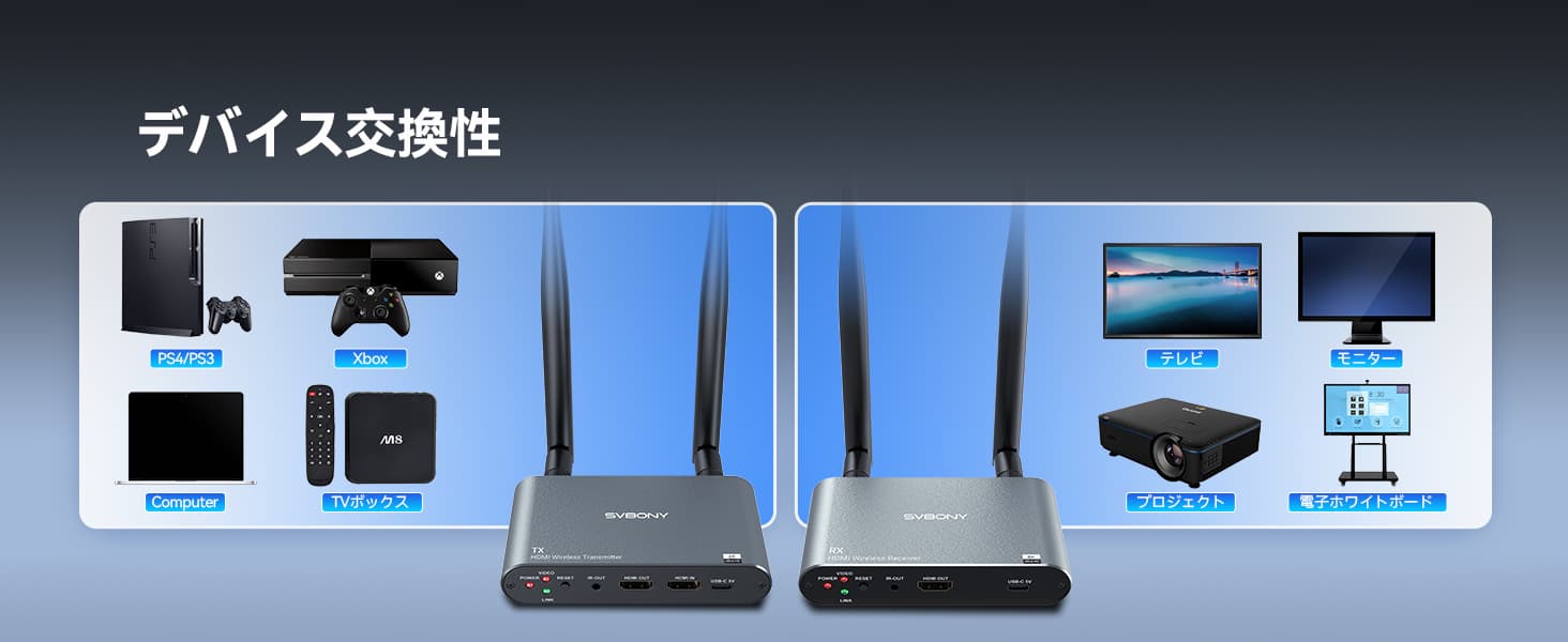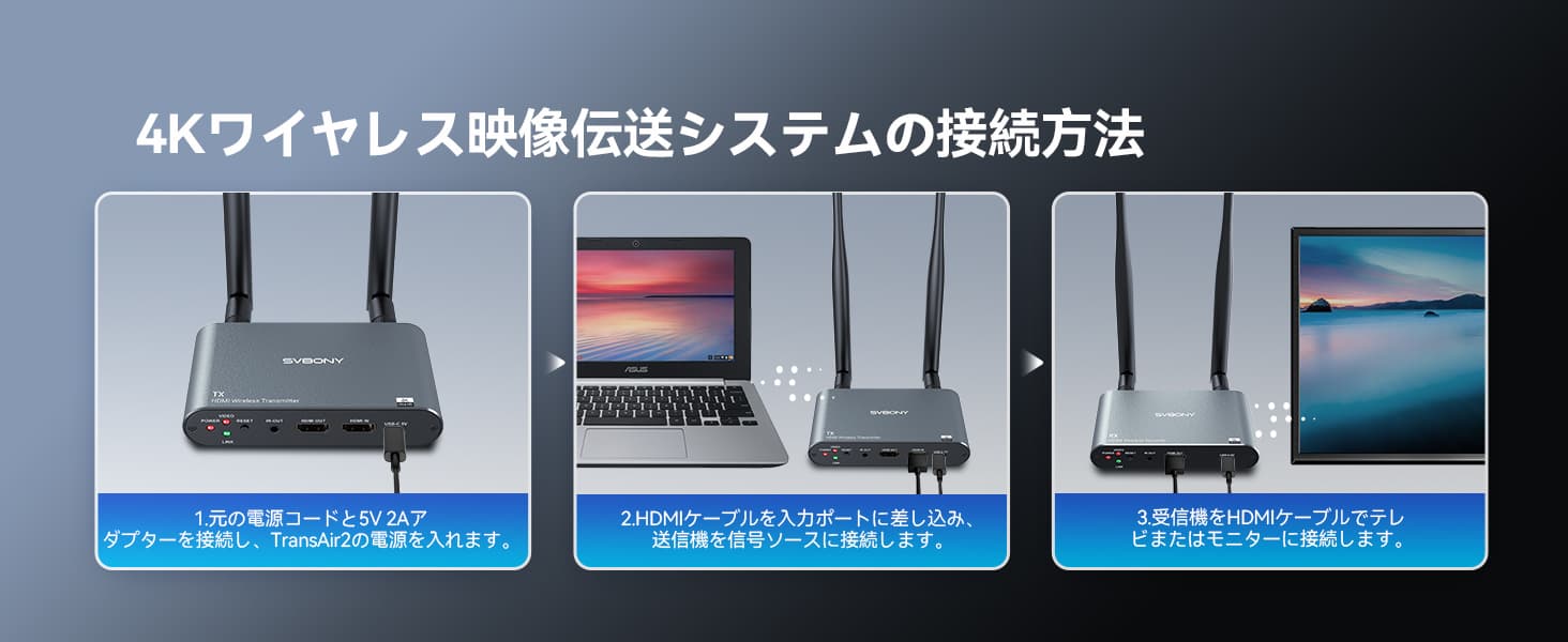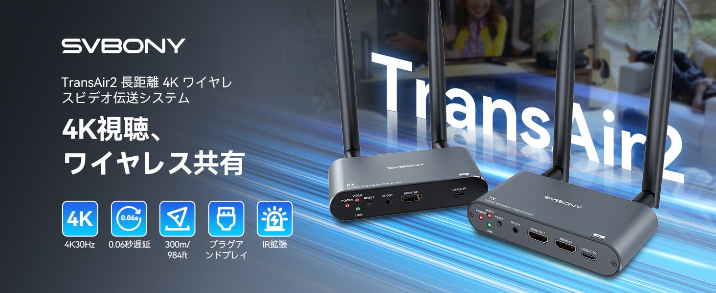 Svbony TransAir2 HDMI ワイヤレス映像伝送システムは、映画鑑賞、ゲーム、スポーツ観戦中に高品質のオーディオビジュアルの楽しみをもたらします。