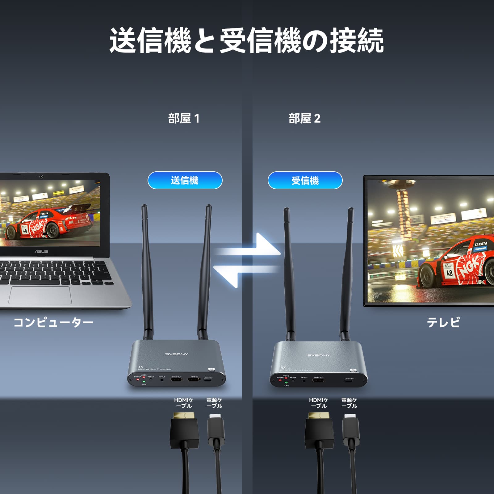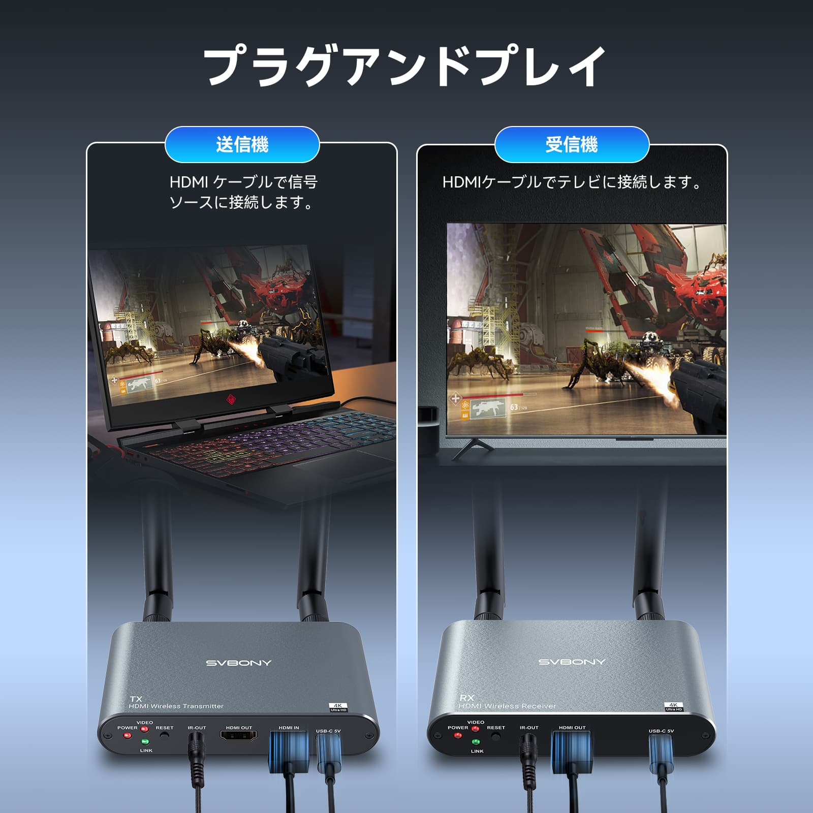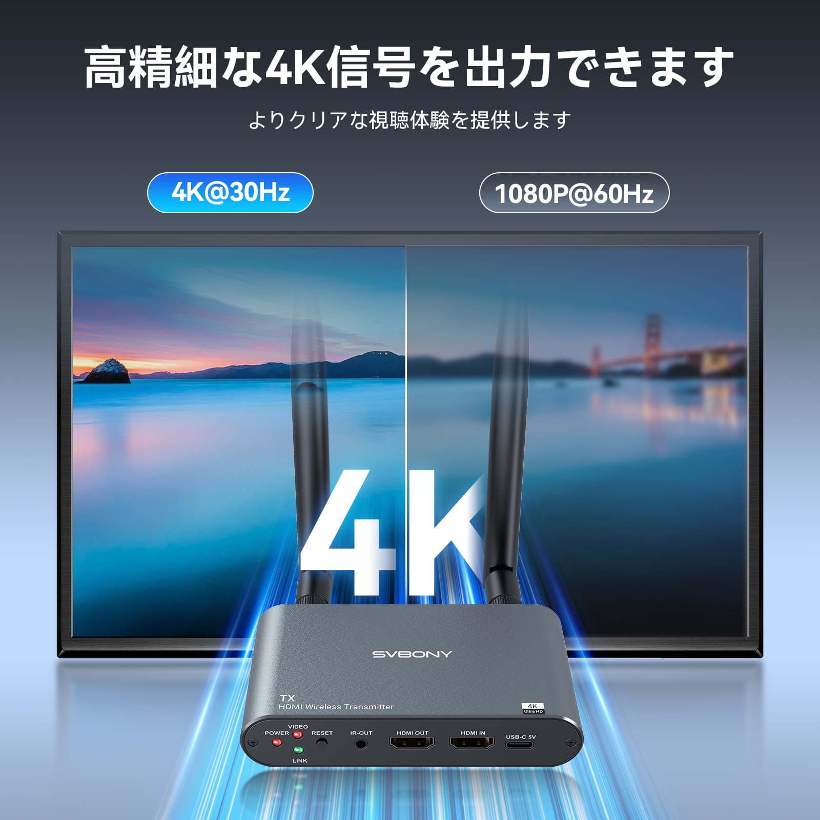 Svbony TransAir2 HDMI ワイヤレス映像伝送システムは、映画鑑賞、ゲーム、スポーツ観戦中に高品質のオーディオビジュアルの楽しみをもたらします。