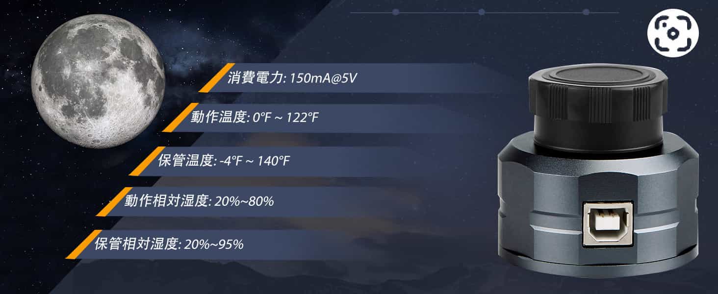 1920×1080の解像度で最大30フレーム/秒の高速2Kビデオを記録し、最大フレームレートは200フレーム/秒で、ほぼすべての望遠鏡に直接ネジで接続するためのアルミニウム製の1.25インチアダプタバレルです。