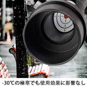 - 低温でも使用可能、急激な温度差でもスポットサイズが変化しない、極寒にも強く、-30℃の極寒でも使用効果に影響なし。
