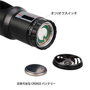 | 電源: | 3V CR2032 ボタン電池(付属) |
