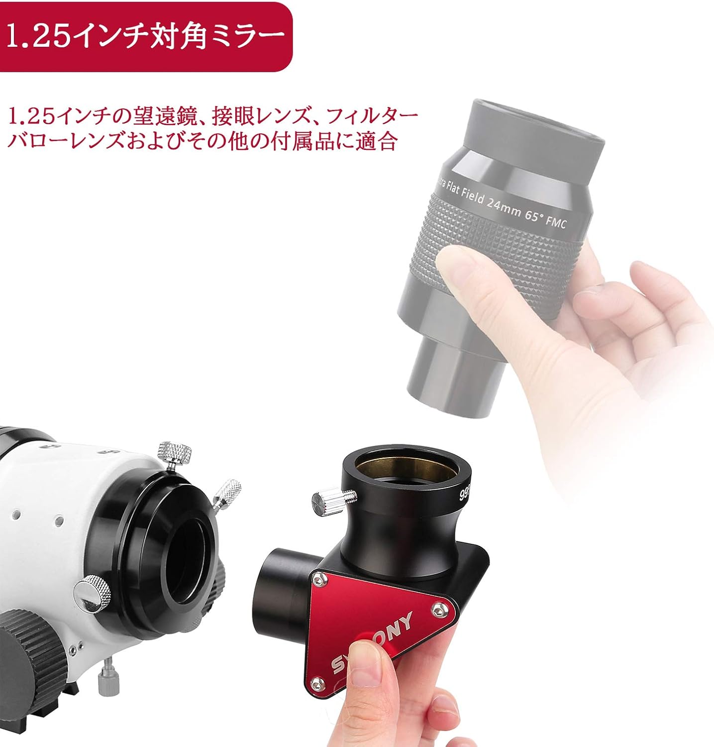 - 高性能ミラー搭載し、接眼側は真鍮リング締め付け式を採用し、接続された天文アクセサリーへのスクラッチや損傷を防ぎます