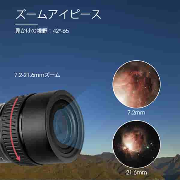 2 | レビュー1.SV191は1.25 インチのアイピースで、焦点距離7.2mm-21.6mmの範囲で倍率を変更出来ます。