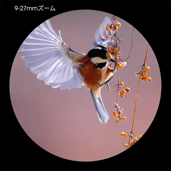 ズームアイピースハウジングをひねるだけで焦点距離が変わり、さまざまな倍率が得られます。