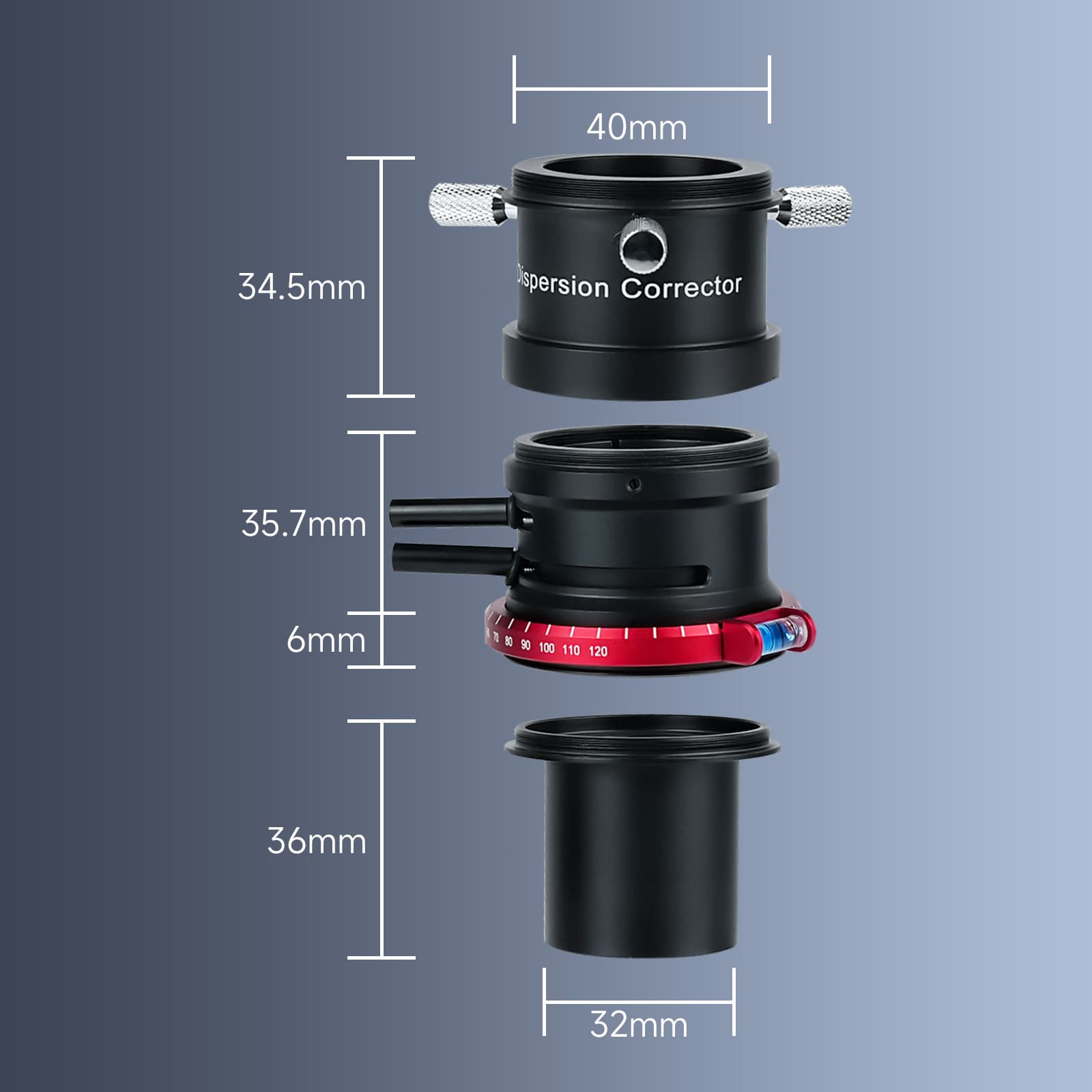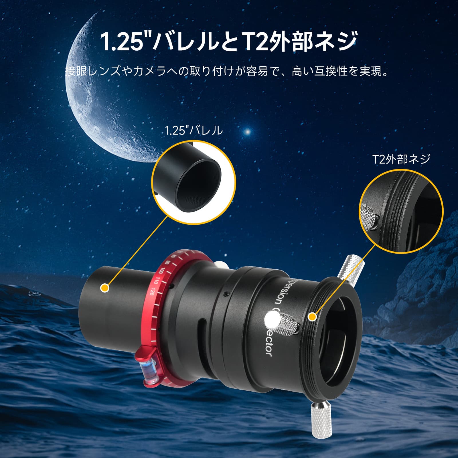2、1.25インチレンズバレル対応。大気分散補正プリズムは1.25インチチューブ設計を採用。さまざまなカメラや接眼レンズに対応。T2外ネジが装備されており、より多くのアクセサリを接続するのに便利です。