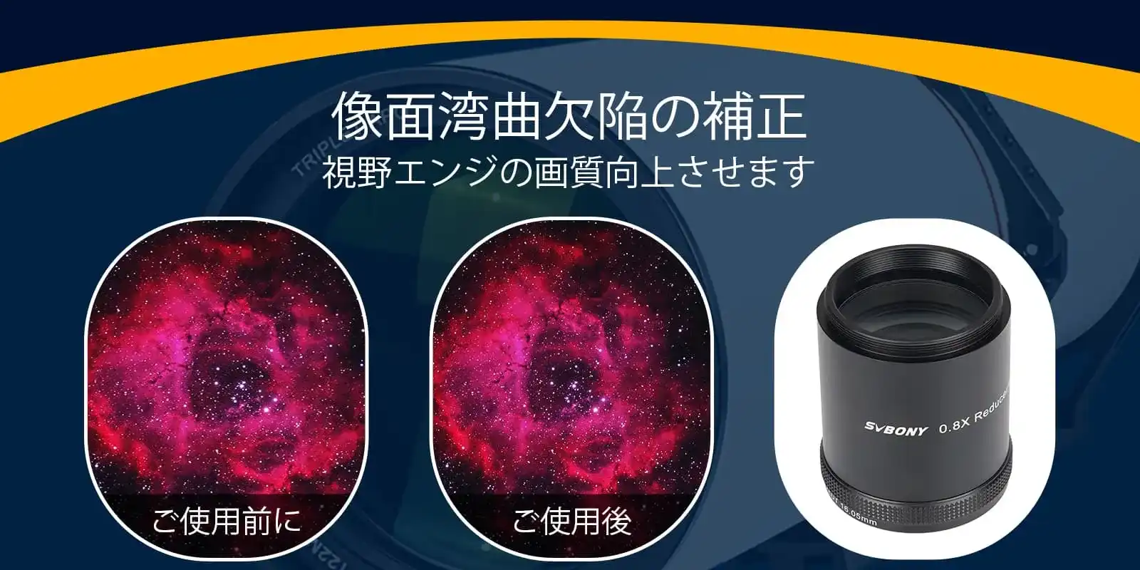 2.SV209 2インチ0.8x フラットナーの機能として、写野周辺の点像の流れを補正し画像の平面性を改善することで写真性能を大幅に向上します。