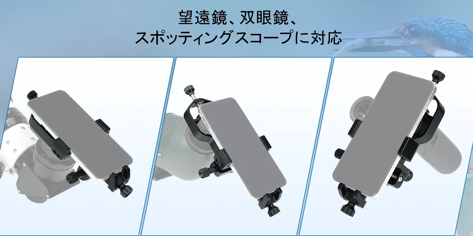 天体観測や動物観察に使えるスマートフォンホルダーです。