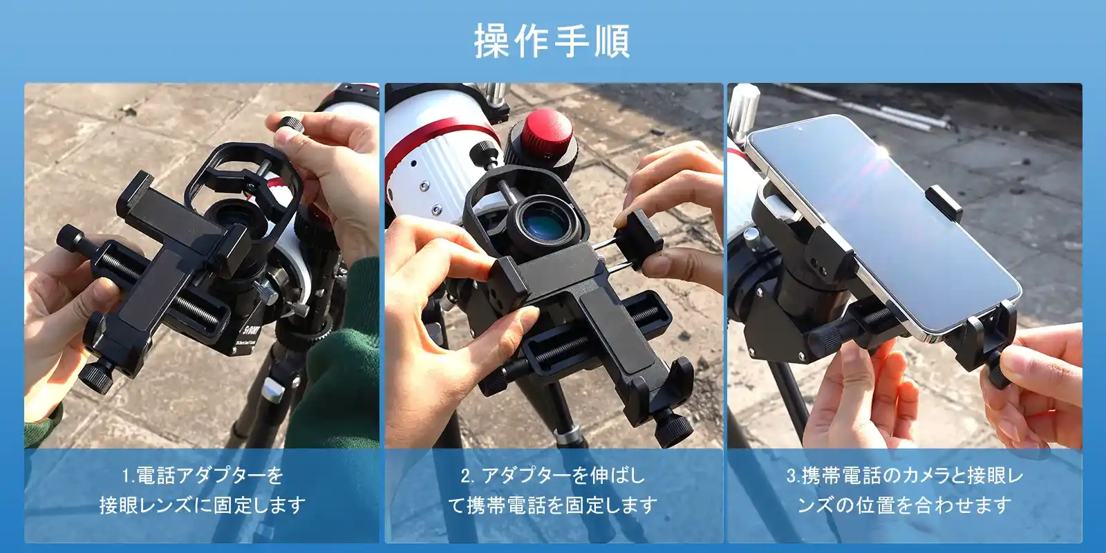 アルミニウム合金製で、スマートフォンを望遠鏡の接眼レンズにしっかりと固定できます。