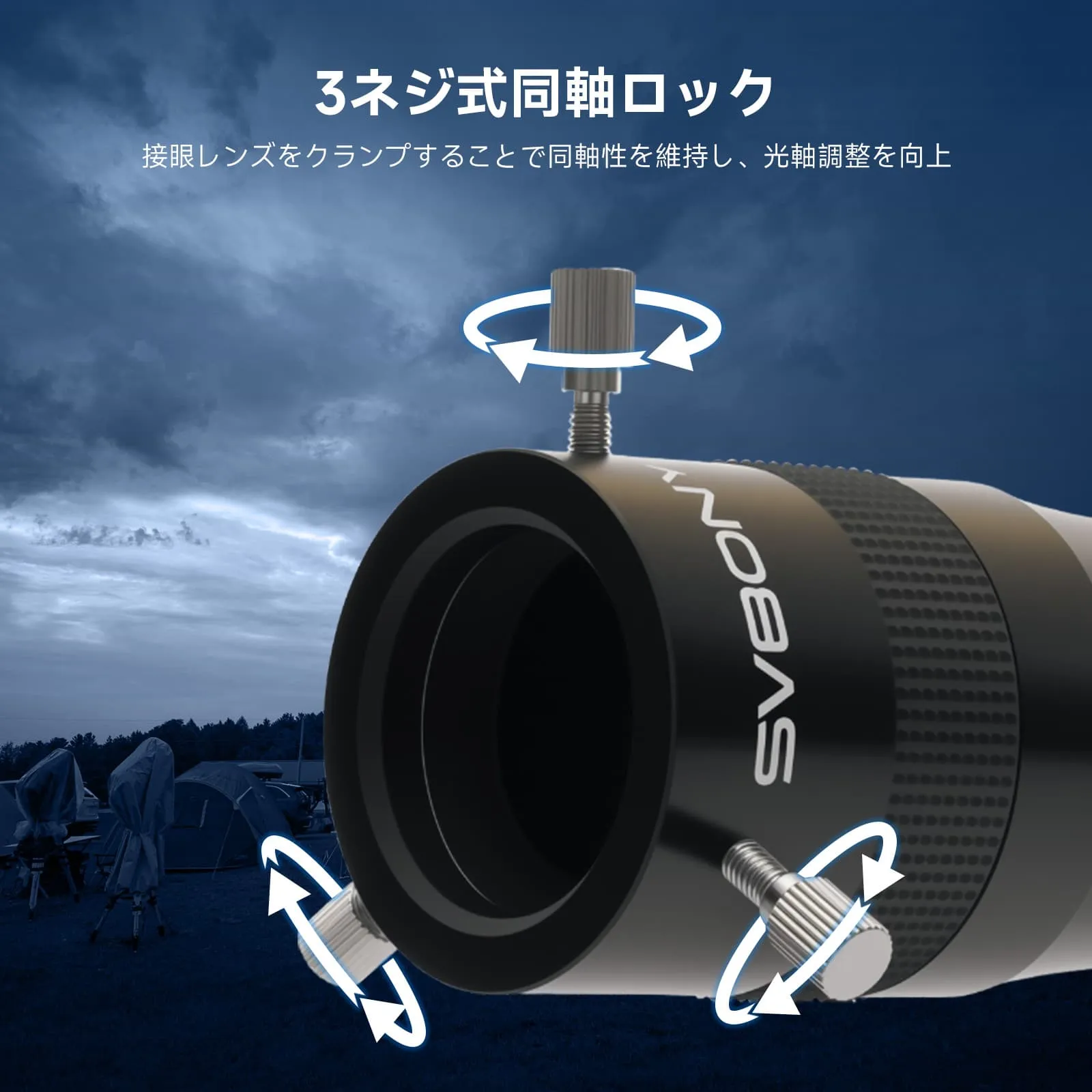 ・確実な固定機構: 独自の3ネジ共軸ロック機構により、接眼レンズを三点から均一に固定します。接続部の同軸度を正確に保ち、ずれやぐらつきを防ぎます。