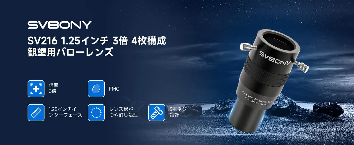 SV216 バローレンズ 1.25インチ 3x 4枚構成 惑星観測・写真撮影用
