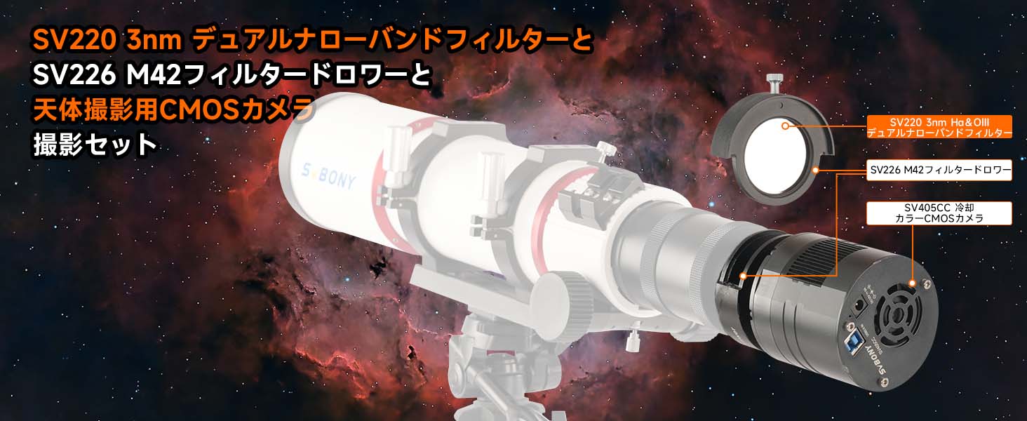 SV220 3nm デュアルナローバンドフィルター撮影セット SV226 M42フィルタードロワーと天体撮影用CMOSカメラ付き