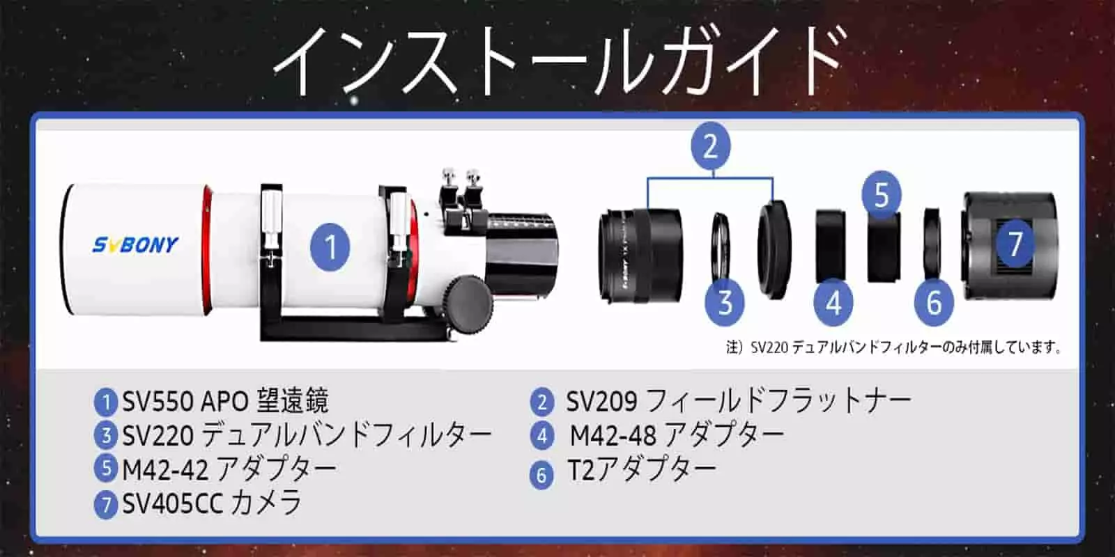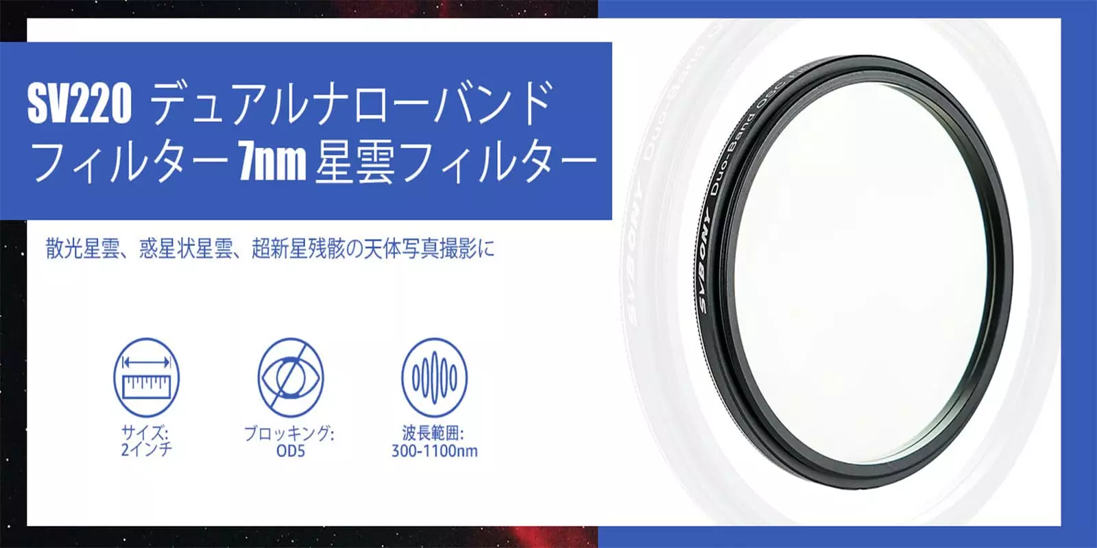 SV220デュアルバンドHa-OIII狭帯域フィルター
